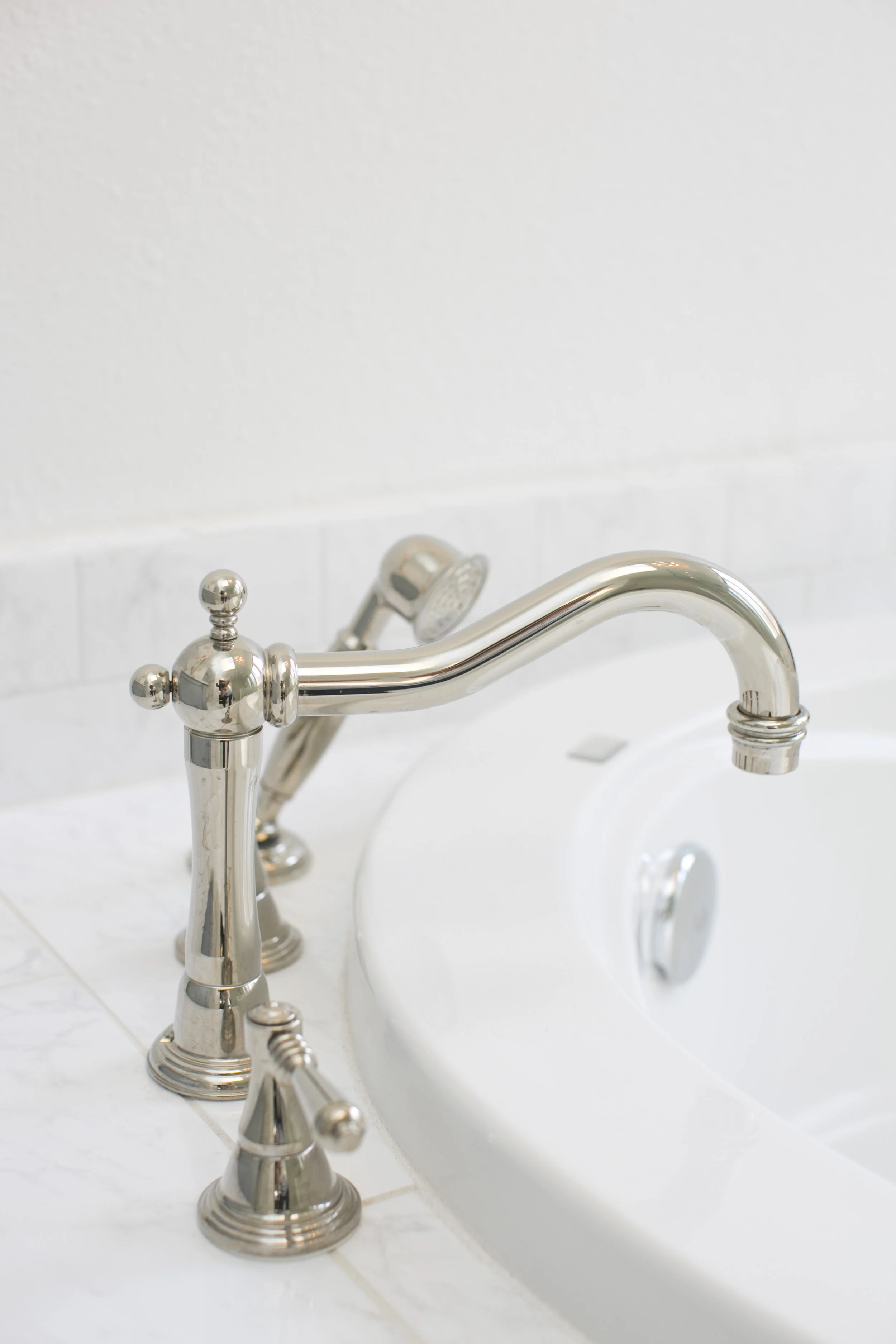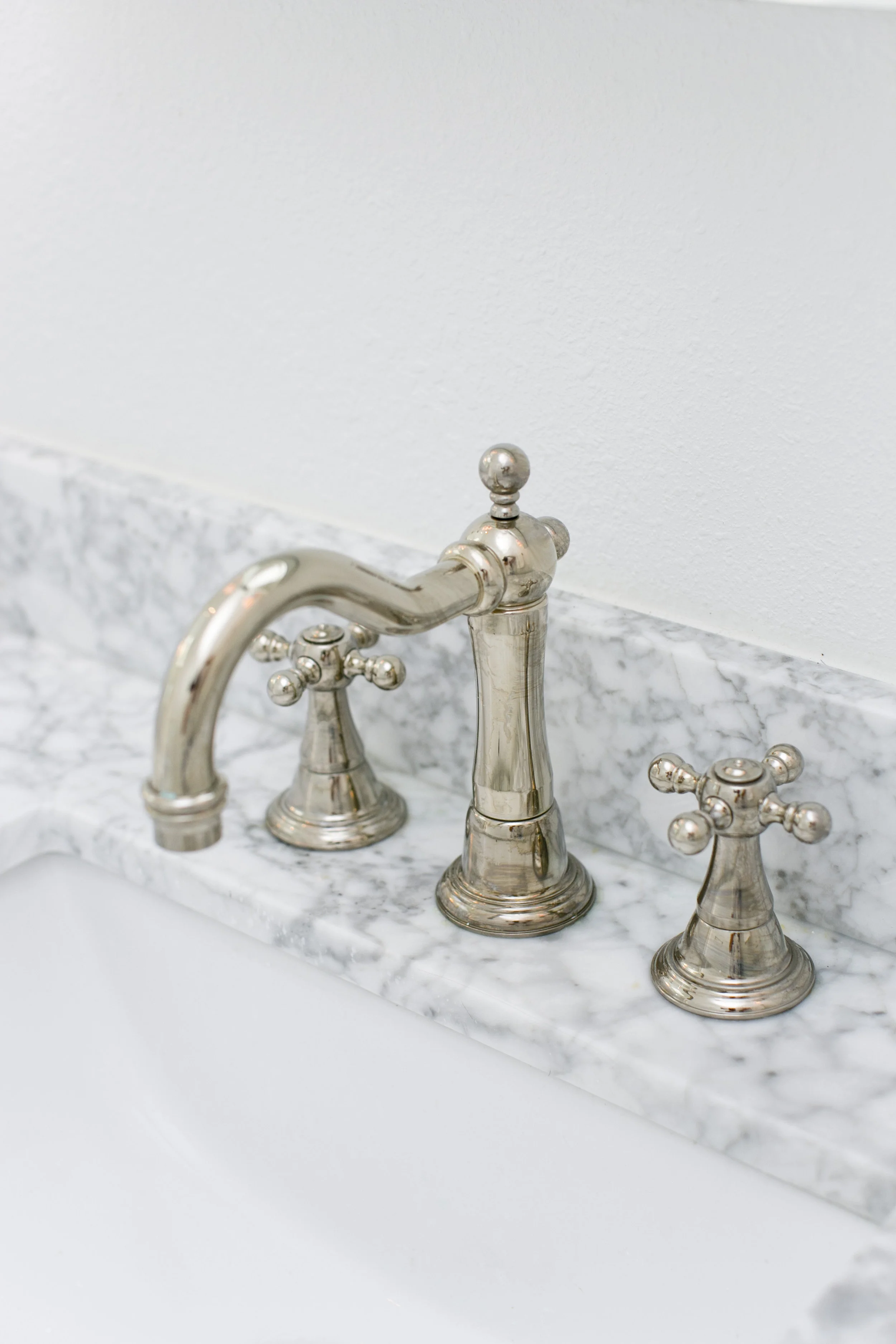 All our fixtures are chrome and this is the gorgeous bridge faucet by Kohler.